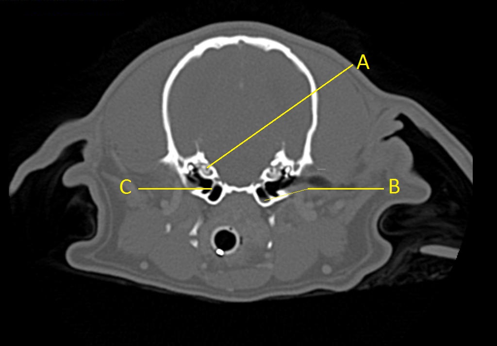 C. small amount of fluid in the tympanic bulla